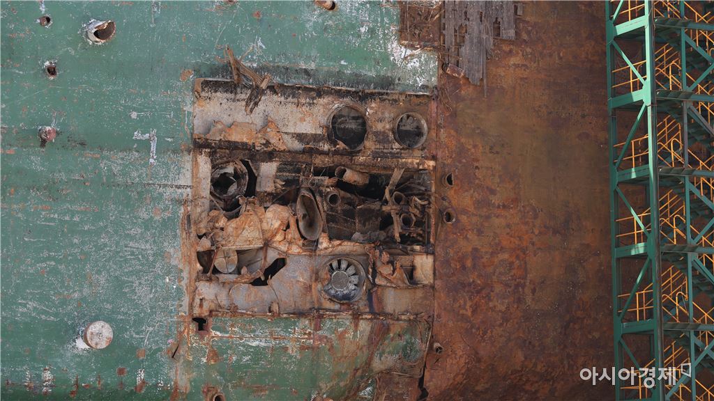 [아시아경제 오현길 기자] 정부 합동 세월호 현장수습본부 관계자들이 19일 목포신항 철재부두에 거치된 세월호 선체에 진입해 수색작업을 진행하고 있다.정부 합동 세월호 현장수습본부 관계자들이 19일 세월호 선체에 진입 수색작업을 진행하고 있다.(사진:해양수산부)