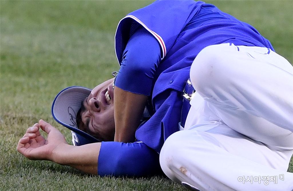 [아시아경제 김현민 기자]프로야구 삼성 라이온즈와 두산 베어스의 2017 KBO리그 경기가 19일 잠실구장에서 열렸다. 1회말 2사에서 삼성 선발투수 우규민이 두산 에반스의 타구에 맞아 쓰러진 뒤 고통스러워하고 있다. 김현민 기자 kimhyun81@asiae.co.kr<ⓒ세계를 보는 창 경제를 보는 눈, 아시아경제(www.asiae.co.kr) 무단전재 배포금지>