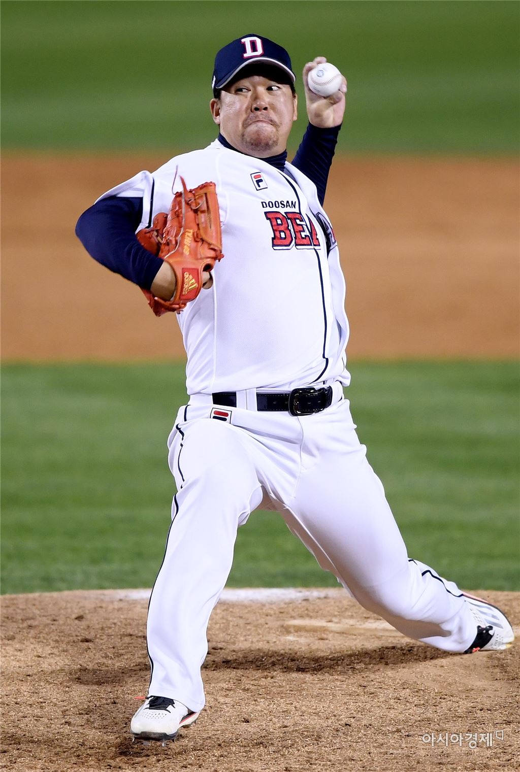 [아시아경제 김현민 기자]프로야구 삼성 라이온즈와 두산 베어스의 2017 KBO리그 경기가 19일 잠실구장에서 열렸다. 8회초 두산 구원투수 이현승이 역투하고 있다. 김현민 기자 kimhyun81@asiae.co.kr<ⓒ세계를 보는 창 경제를 보는 눈, 아시아경제(www.asiae.co.kr) 무단전재 배포금지>