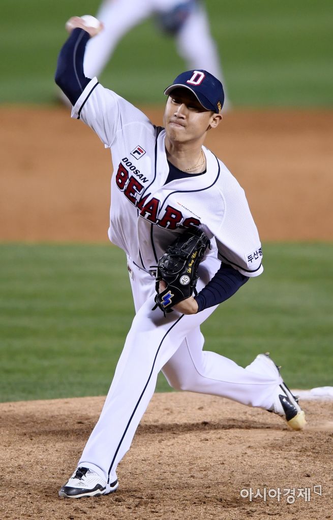 [아시아경제 김현민 기자]프로야구 삼성 라이온즈와 두산 베어스의 2017 KBO리그 경기가 19일 잠실구장에서 열렸다. 8회초 두산 구원투수 이용찬이 역투하고 있다. 김현민 기자 kimhyun81@asiae.co.kr<ⓒ세계를 보는 창 경제를 보는 눈, 아시아경제(www.asiae.co.kr) 무단전재 배포금지>