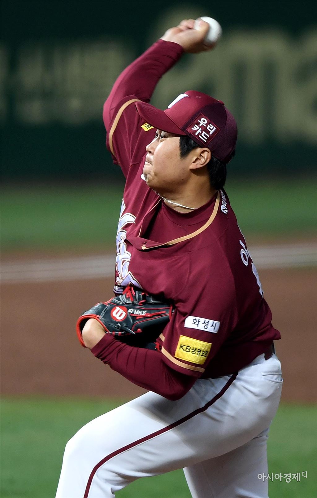 [인천=아시아경제 김현민 기자]프로야구 넥센 히어로즈와 SK와이번스의 2017 KBO리그 경기가 20일 인천 SK행복드림구장에서 열렸다. 7회말 넥센 구원투수 이보근이 역투하고 있다. 김현민 기자 kimhyun81@asiae.co.kr<ⓒ세계를 보는 창 경제를 보는 눈, 아시아경제(www.asiae.co.kr) 무단전재 배포금지>