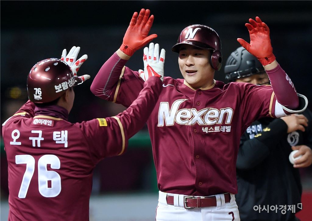 [인천=아시아경제 김현민 기자]프로야구 넥센 히어로즈와 SK와이번스의 2017 KBO리그 경기가 20일 인천 SK행복드림구장에서 열렸다. 8회초 2사 2루에서 넥센 김하성이 SK 박희수를 상대로 역전 투런 홈런을 치고 오규택 코치와 기뻐하고 있다. 김현민 기자 kimhyun81@asiae.co.kr<ⓒ세계를 보는 창 경제를 보는 눈, 아시아경제(www.asiae.co.kr) 무단전재 배포금지>
