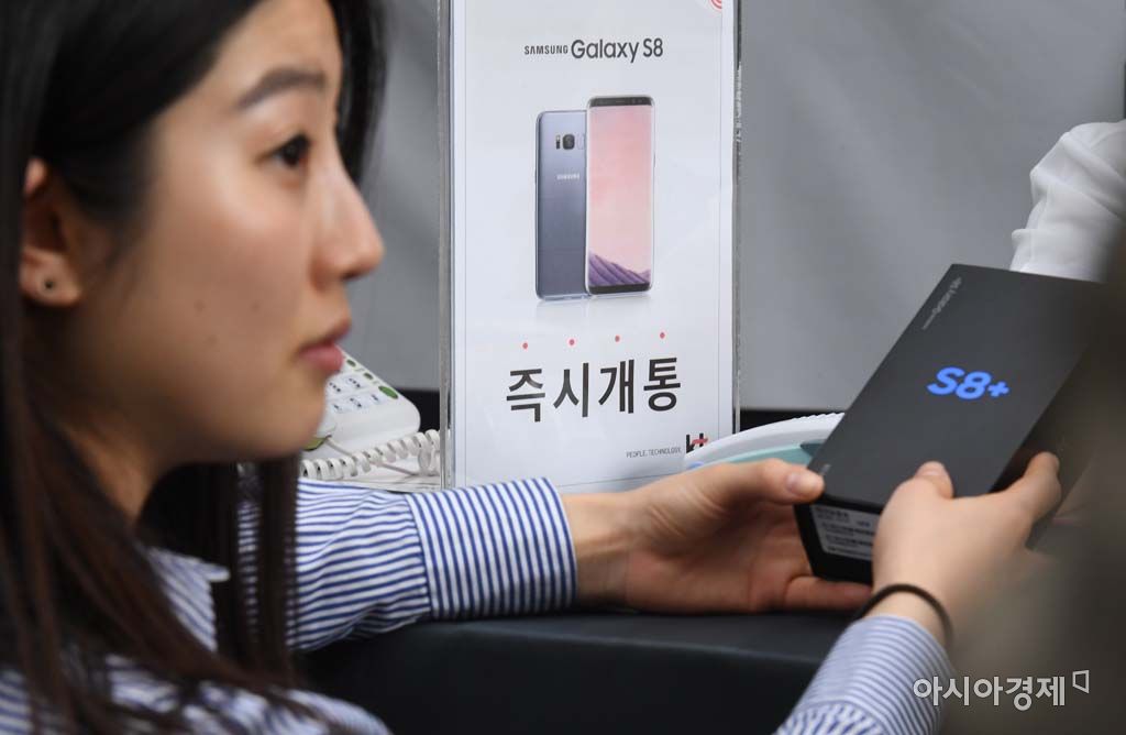 [아시아경제 백소아 기자] 갤럭시S8의 정식 개통이 시작된 21일 서울 종로구 광화문KT스퀘어에서 고객들이 갤럭시S8 개통을 위해 대기하고 있다.백소아 기자 sharp2046@asiae.co.kr<ⓒ세계를 보는 창 경제를 보는 눈, 아시아경제(www.asiae.co.kr) 무단전재 배포금지>