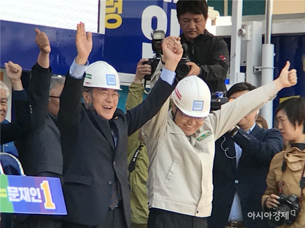 문 후보는 "조선업 어렵다는 이야기 나온 지가 언젠데 대책 없이 내버려 두고 있다"면서 "산업수도 울산을 깨우겠다"고 말했다. 문 후보는 "울산경제를 살려 대한민국 경제성장판을 다시 열겠다"고 말했다.