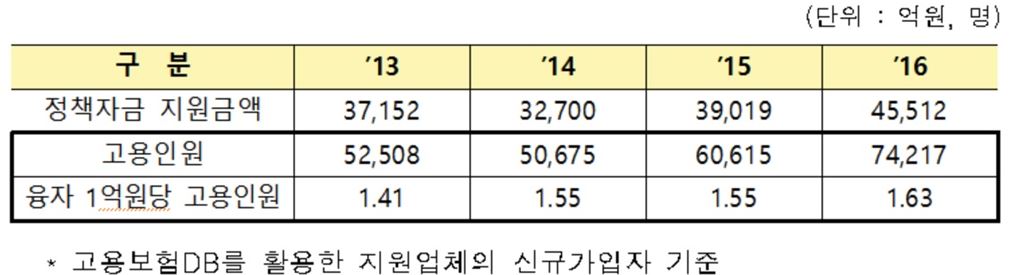 연도별 정책자금 지원 고용창출 성과