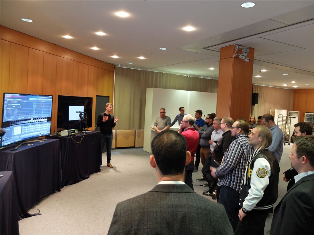 21일(현지시간) 독일 프랑크푸르트에서 열린 삼성 QLED TV 기술을 선보이는 'QLED 포럼'에서 독일의 화질 전문가 마르셀 곤스카(Marcel Gonska)가 '컬러볼륨'을 설명하고 있다.