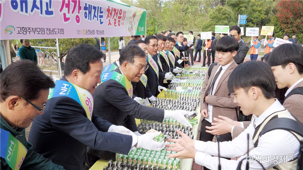 "청소년 '쌀 한톨에 키 한Tall↑' 캠페인 ""아침밥의 중요성과 식생활 개선의 필요성 홍보"[아시아경제 노해섭 기자]농협전남지역본부(본부장 이흥묵)는 지난 21일 순천복성고등학교(교장 안병권)에서 전남농협, 전남교육청, 농협 순천시지부, 순천농협 ,고향주부모임 등 임직원, 교직원 및 학부모 50여명이 참석한 가운데 청소년 쌀 소비 활성화를 위한 아침밥 먹기 캠페인을 실시했다.이날 캠페인에는 장만채 전라남도교육감, 곽영채 전남도의회 교육위원장, 윤종식 순천시교육장, 이흥묵 전남농협본부장, 서재식 농협순천시지부장, 강성채 순천농협조합장, 이문자 고향주부모임순천시지회장, 순천복성고등학교 교직원 및 학부모 등이 참석했다.캠페인에 참가한 참석자들은 맛있는 전남쌀로 만든 삼각김밥과 우리콩으로 만든 두유 각 1,100개를 등교하는 학생들에게 나누어주며, 패스트푸드와 인스턴트 식품에 많이 노출되어 있는 청소년들에게 아침밥의 중요성과 식생활개선의 필요성을 널리 알려주었다. 전남농협은 매년 도교육청과 함께 청소년 아침밥먹기 캠페인을 실시하고 있다.이 외에도 전남농협은 지속적으로 황폐해져가고 있는 우리 농업환경의 근본인 “흙”의 소중함을 알리기 위해, 학생들과 교직원들이 가정과 학교농장에서 쉽게 키울 수 있는 다양한 꽃씨와 채소모종세트 및 상토를 나누어주는 행사도 함께 진행했다. 또한 작년부터 농협에서 전사적으로 전개하고 있는 “또 하나의 마을만들기”를 알리기 위한 저금통도 나누어주는 등 다채로운 행사를 병행했다.이흥묵 본부장은 “우리나라 국민 한명당 하루 한끼반정도만 쌀밥을 드시고 계셔 주곡인 쌀을 생산하는 농업인의 소득 지지가 갈수록 어려워지고 있다”며 “도교육청과 함께 자라나는 미래세대인 청소년에게 아침밥의 중요성을 알리고 쌀소비를 늘릴 수 있도록 지속적으로 노력하겠다“고 말했다.노해섭 기자 nogary@<ⓒ세계를 보는 창 경제를 보는 눈, 아시아경제(www.asiae.co.kr) 무단전재 배포금지>