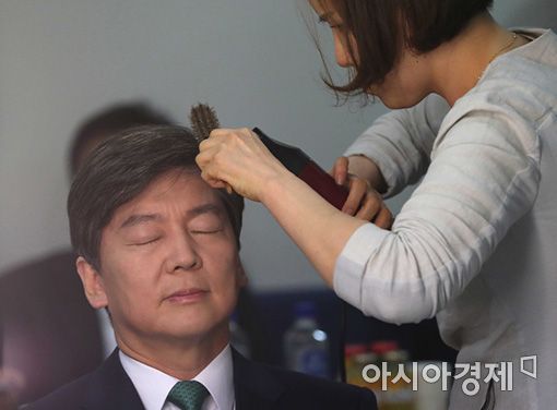 [국회사진기자단] 25일 경기도 고양시 빛마루 방송지원센터에서 열린 2017 대통령 후보 초청 토론회에서 안철수 국민의당 후보가 메이크업을 하고 있다.윤동주 기자 doso7@asiae.co.kr<ⓒ세계를 보는 창 경제를 보는 눈, 아시아경제(www.asiae.co.kr) 무단전재 배포금지>