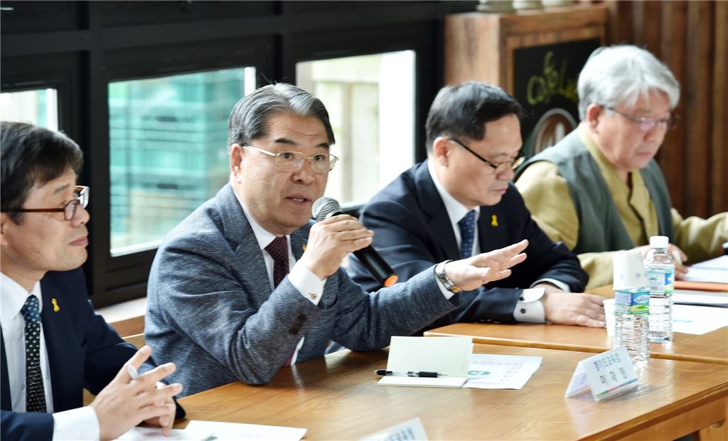 이재정 경기도교육감이 광주하남지역 학교장들과 간담회를 갖고 경기교육 현안 등에 대해 이야기하고 있다.