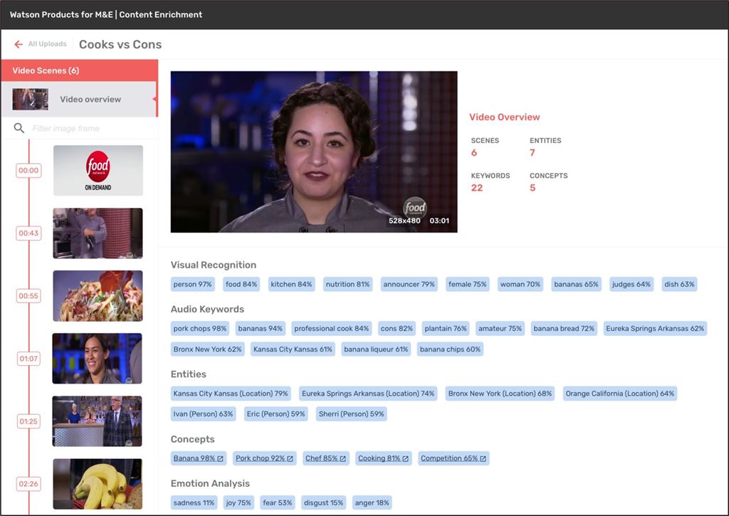 IBM은 "인공지능 왓슨이 동영상을 분석해 특정한 장면을 편집하고 재구성할 수 있다"고 말했다. IBM 리서치 기술을 이용해서 생성한 데이터를 분석하고, 콘텐츠의 의미적 단서를 바탕으로 비디오를 논리적으로 분류하게 된다.