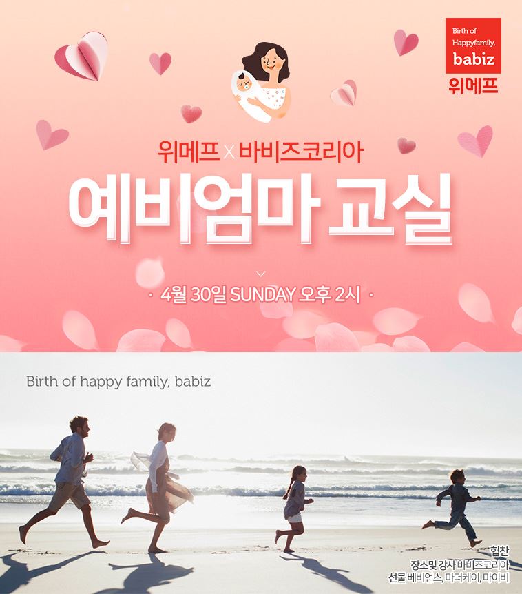 모유 수유, 태교 분만 강좌 등 예비맘 위한 교육 프로그램 제공[아시아경제 김유리 기자] 위메프는 오는 30일 임신, 출산, 육아 전문회사 바비즈코리아와 함께 산모들을 위한 '예비엄마 교실' 이벤트를 진행한다고 26일 밝혔다. 위메프가 가정의 달을 앞두고 진행하는 예비엄마 교실은 모유 수유, 태교 분만 강좌 등 출산을 앞둔 산모들에게 유익한 다양한 교육 프로그램을 제공하는 이벤트다. 해당 응모딜에서 응모하기를 선택한 후, QnA에 댓글을 작성하면 응모가 완료된다.접수한 신청자 중 추첨을 통해 총 10명(동반입장 1인까지 가능)을 선정할 예정이다. 자세한 내용은 위메프에서 '예비엄마 교실'을 검색 후 해당페이지에서 확인 할 수 있다.예비엄마 교실 이벤트는 국제모유수유전문가 박보림 원장의 강의로 1시간30분 가량 진행될 예정이며, 참석자 전원에게는 베비언스, 마더케이, 마이비 등 푸짐한 선물이 제공된다. 박수지위메프 상품사업본부 MD는 "가정의 달 5월을 앞두고 기획한 이번 이벤트를 통해 출산을 앞둔 고객분들에게 실질적인 도움이 되길 바란다"고 말했다. 김유리 기자 yr61@asiae.co.kr<ⓒ세계를 보는 창 경제를 보는 눈, 아시아경제(www.asiae.co.kr) 무단전재 배포금지>