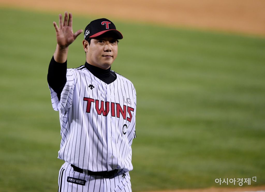 [아시아경제 김현민 기자]프로야구 SK 와이번스와 LG 트윈스의 2017 KBO리그 경기가 26일 잠실구장에서 열렸다. LG 선발 류제국이 5회초 수비를 마치고 팬들의 환호에 화답하고 있다. 6이닝 무실점 호투중.김현민 기자 kimhyun81@asiae.co.kr<ⓒ세계를 보는 창 경제를 보는 눈, 아시아경제(www.asiae.co.kr) 무단전재 배포금지>