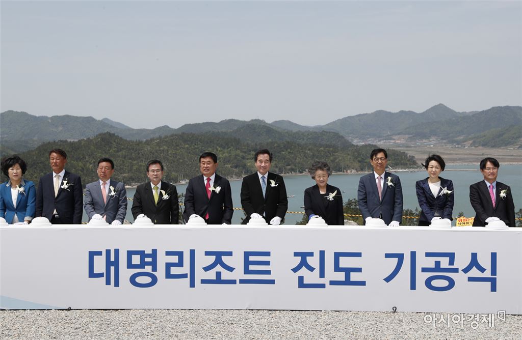 "민자 3,508억원 투입, 사계절 체류형 관광리조트 2022년 최종 완공"[아시아경제 노해섭 기자]대한민국 관광리조트 업계 1위인 대명레저산업이 보배섬 진도군에 민자 3,508억원을 투입해 진도 대명해양리조트를 건설한다.진도군은 “대명레저산업이 지난 27일(목) 오전 12시 진도군 의신면 송군리 일원에 국내 최대 규모 리조트 건설을 위한 기공식을 임직원과 향우·주민 1,000여명이 참석한 가운데 개최했다”고 밝혔다.이날 기공식에는 박춘희 대명그룹 회장, 이낙연 전라남도지사, 이동진 진도군수 등이 참석했으며, 1단계로 조성되는 565개 객실은 오는 2019년까지 완공될 예정이다.부지 면적 558,765㎡에 총 1,007객실 규모로 오는 2022년 최종 완공 예정인 진도 대명해양리조트는 산과 바다가 어우러지는 타워콘도, 비치호텔, 마리나시설, 오션빌리지 등 사계절 체류형 관광리조트로 건설된다.진도 대명해양리조트는 지난 2013년 4월 업무협약(MOU)을 체결한 후 주민사업설명회, 환경영향평가, 관광단지 지정 및 조성계획 승인 등을 거쳐 지난해 12월 27일부터 진입로 터널공사를 실시하고 있다.