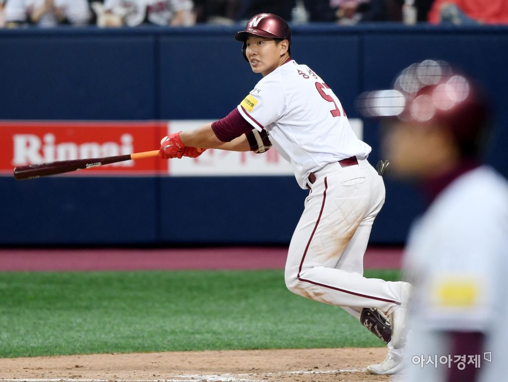 [아시아경제 김현민 기자]프로야구 두산 베어스와 넥센 히어로즈의 2017 KBO리그 경기가 27일 서울 고척돔에서 열렸다. 4회말 2사 1,3루에서 넥센 송성문이 추가 1타점 적시타를 치고 있다. 김현민 기자 kimhyun81@asiae.co.kr<ⓒ세계를 보는 창 경제를 보는 눈, 아시아경제(www.asiae.co.kr) 무단전재 배포금지>