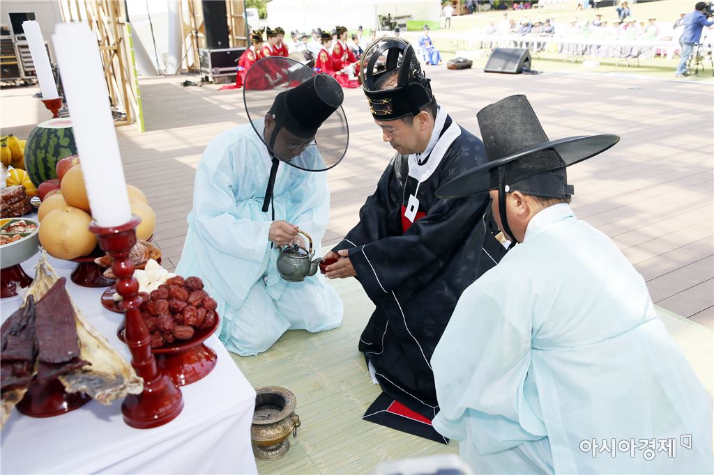 "차의 풍년과 군민의 안녕을 기원하는 다신제"[아시아경제 노해섭 기자]제43회 보성다향대축제가 한국차문화공원에서 열리는 가운데 3일 이용부 보성군수가 올 한해 차의 풍년과 군민의 안녕을 기원하는 다신제를 주무대에서 경건하게 올렸다. 노해섭 기자 nogary@<ⓒ세계를 보는 창 경제를 보는 눈, 아시아경제(www.asiae.co.kr) 무단전재 배포금지>