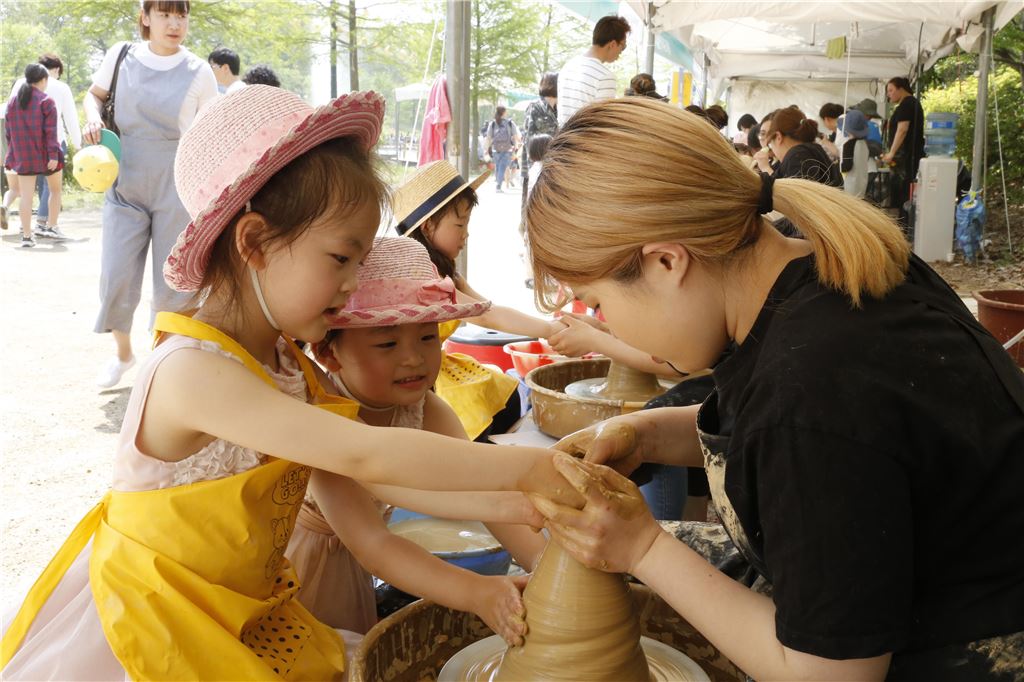 [아시아경제 노해섭 기자]전남도립대학교 도예차문화과 1학년 학생들이 지난 5월 2일 시작된 담양 대나무축제 행사장에서 도예체험장을 운영, 축제장을 찾은 여행객들로부터 큰 인기를 누리고 있다. 체험객들은 학생들의 도움으로 물레를 돌리고 도자기를 빚어보는 색다른 경험을 하며 즐거운 한때를 보냈다. 학생들의 도예 체험은 대나무축제가 끝나는 5월 7일까지 계속된다.사진제공=전남도<ⓒ세계를 보는 창 경제를 보는 눈, 아시아경제(www.asiae.co.kr) 무단전재 배포금지>