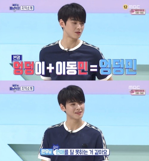 '예능연수원' 만찢남 아스트로 차은우가 특별한 별명을 공개했다.5일 첫 방송된 MBC '비밀 예능연수원'에서는 아이돌 그룹 가수들이 대거 출연해 특별한 예능감을 뽐냈다.이날 자기소개를 하던 차은우는 "별명이 엉덩민이다"라고 말해 눈길을 끌었다.차은우는 "엉덩이가 좀 크다. 원래 본명이 이동민이라서 엉덩민이 됐다"고 말해 웃음을 자아냈다.엄친아로도 유명한 차은우는 공부를 잘했냐는 출연자들의 질문에 "예전에는 열심히 했었다. 전교에서 3등을 했었다"고 말해 놀라움을 자아냈다.솔비가 "못하는 게 뭐냐?"고 묻자 잠시 고민하던 차은우는 "연애를 잘 못한다"고 답해 이목을 집중시켰다.이국주는 "더 매력있는 것 같다"며 흐뭇한 표정으로 차은우를 바라봤다.한편 '비밀 예능 연수원'은 예능 초보자들이 예능 연수를 받는 콘셉트의 2부작 특집 프로그램이다. 개그우먼 이국주, 가수 솔비, 비투비 육성재&이창섭, 위너 송민호, 블락비 피오, 2AM 정진운, 악동뮤지션, EXID 하니, 에이핑크 보미, 여자친구 예린, 가수 한동근 등이 출연했다. 디지털뉴스본부 송윤정 기자 singasong@asiae.co.kr<ⓒ세계를 보는 창 경제를 보는 눈, 아시아경제(www.asiae.co.kr) 무단전재 배포금지>
