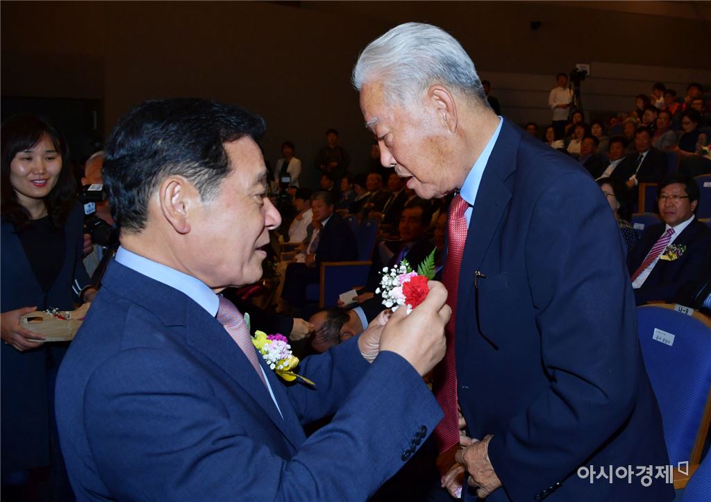 [아시아경제 노해섭 기자]윤장현 광주광역시장이 8일 오전 남구 빛고을시민문화관 공연장에서 열린 ‘제45회 어버이날’ 기념행사에 참석해 대한노인회 광주지회 오병채 회장에게 ‘감사의 카네이션’을 달아주고 있다.