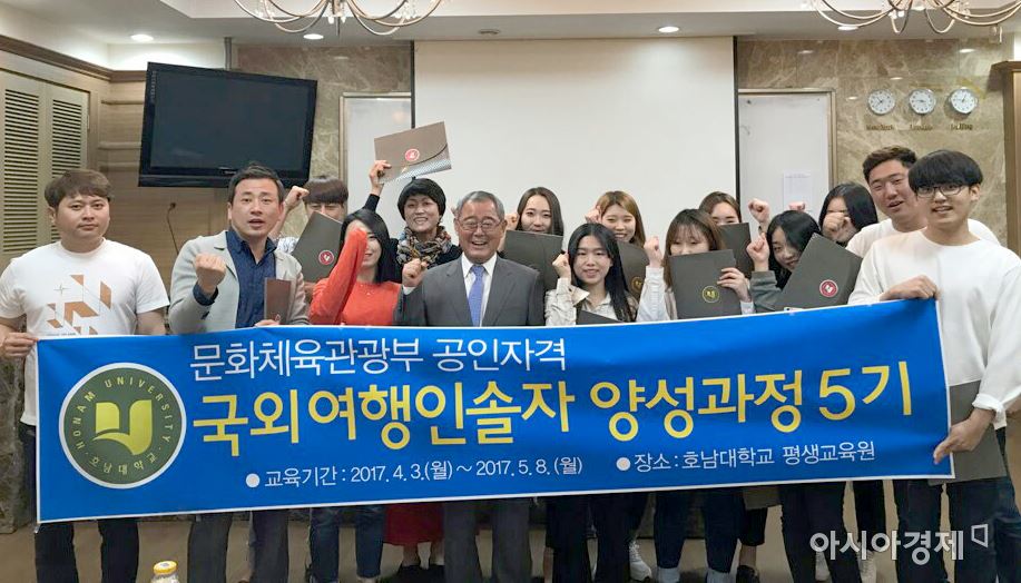 [아시아경제 노해섭 기자]호남대학교 평생교육원(원장 장석주)은 최근 4110실에서 ‘문화체육관광부 국외여행인솔자 양성과정 5기’ 수료식을 가졌다. 이번 수료식은 4월 3일부터 5월 2일까지 80시간 동안 국외여행인솔자 실무, 관광법규, 해외여행 안전관리, 실무영어, 커뮤니케이션기법 등 국외여행인솔자에게 필요한 실무교육을 받은 관광관련학과 재학 및 졸업생 15명에 수료증을 수여했다. 국외여행인솔자는 해외여행 시 여행객들과 함께 출발해 여행을 마치고 귀국할 때까지 여행객의 전반적인 여행 일정을 관리하는 업무를 담당한다. 한편 ‘국가공인 국외여행인솔자 소양과정 9기’는 여행사 직원을 대상으로, 오는 8월 26일부터 이틀 동안 진행되며, 8월 18일까지 선착순 모집한다. 교육과정에 대한 자세한 내용은 홈페이지(lifelong.honam.ac.kr)나 평생교육원(062-380-8530~4)으로 문의하면 된다. 노해섭 기자 nogary@<ⓒ세계를 보는 창 경제를 보는 눈, 아시아경제(www.asiae.co.kr) 무단전재 배포금지>