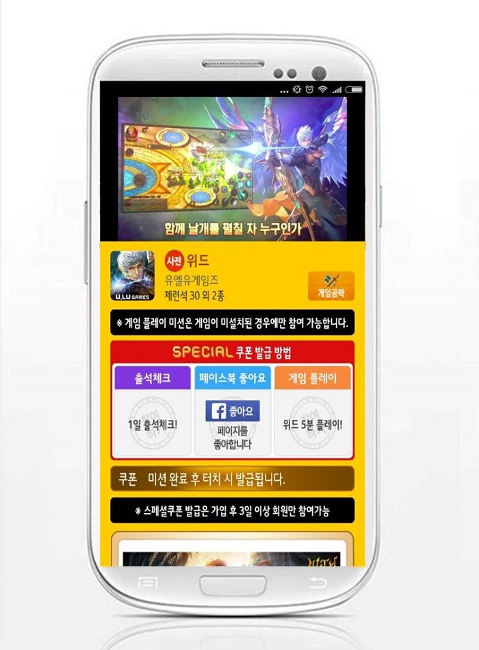이번에 쿠폰이 추가된 게임은 ‘위드’로 ‘1일 출석체크’, ‘페이스북 좋아요’, ‘5분 플레이’ 미션을 완수하면 ‘제련석 30개’, ‘날개의 정화 10개’, ‘생명력 결정 40개’를 제공한다.유엘유게임즈에서 서비스하는 ‘위드’는 끝없이 펼쳐지는 광대한 필드와 화려한 그래픽 그리고 강렬한 타격감을 내세운 모바일 MMORPG로 원스토어, 애플 앱스토어에 이어 지난 3일 구글플레이 스토어에도 정식 출시됐다.강자 대결, 영토 쟁탈전 등 다채로운 대결 시스템을 통해 짜릿한 PVP의 손맛을 경험할 수 있으며, 스케일이 남다른 탈 것 시스템과 성장의 한계를 뛰어넘는 펫 시스템을 비롯해 공간의 탑, 필드 레이드 등 함께할수록 더 즐거운 팀플레이로 기존 MMORPG와는 차별화된 재미를 선사한다.한편, ‘모비’는 ‘레전드라인업’, ‘노블레스 with NAVER WEBTOON’, ‘리니지 레드나이츠’, '탄: 끝없는 전장', '원티드 킬러 for Kakao', ‘뮤오리진’, ‘펜타스톰 for Kakao’ 등 인기 게임의 무료 쿠폰과 ‘드래곤 프로젝트’, ‘프리스타일2: 플라잉덩크‘, ‘마제스티아’, ‘리니지M’, ‘아제라: 아이언하트’ 등 모바일게임 기대작의 사전예약 쿠폰을 포함해 사전예약 어플 중 가장 많은 게임 쿠폰을 제공하며 회원 수, 일일 유저 수에서 독보적인 1위를 달리고 있다.디지털뉴스본부 온라인이슈팀 issue@asiae.co.kr<ⓒ세계를 보는 창 경제를 보는 눈, 아시아경제(www.asiae.co.kr) 무단전재 배포금지>