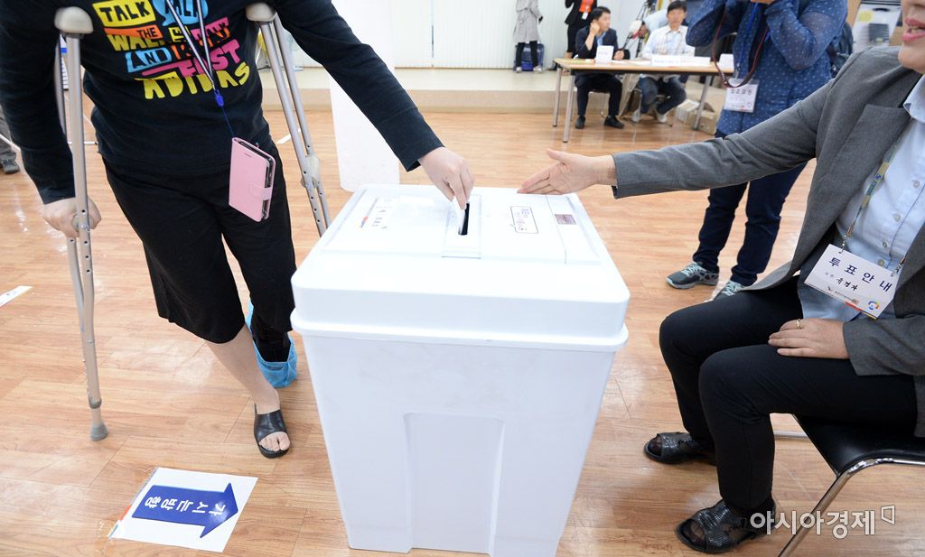 [아시아경제 문호남 수습기자] 제19대 대통령 선거일인 9일 서울 송파구 송파문화원에서 한 시민이 투표를 하고 있다. 선거일 당일 투표는 주소지 관할 투표소에서만 가능하며, 이날 오후 8시까지 계속된다. 문호남 수습기자 munonam@asiae.co.kr<ⓒ세계를 보는 창 경제를 보는 눈, 아시아경제(www.asiae.co.kr) 무단전재 배포금지>