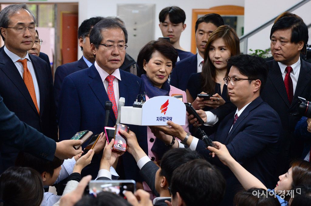 [아시아경제 문호남 수습기자] 홍준표 자유한국당 대선후보가 제19대 대통령 선거일인 9일 서울 송파구 송파문화원, 잠실 7동 제1투표소에서 투표를 마친 뒤 취재진의 질문에 답변하고 있다.문호남 수습기자 munonam@asiae.co.kr<ⓒ세계를 보는 창 경제를 보는 눈, 아시아경제(www.asiae.co.kr) 무단전재 배포금지>