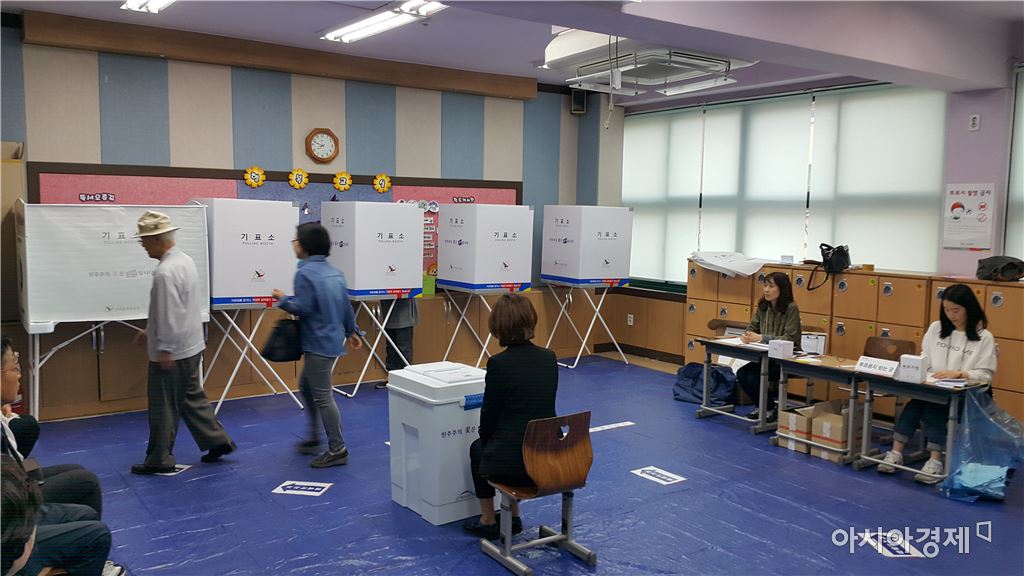 [아시아경제 권성회 기자] 제 19대 대통령선거일인 9일 낮 12시 기준 투표율이 24.5%로 기록됐다.중앙선거관리위원회에 따르면 현재 시각 총 선거인수 4247만9710명 중 1039만4831명이 투표에 참가해 투표율 24.5%를 보이고 있다.이는 지난 2012년 18대 대선 당시 낮 12시 기준 투표율 34.9%보다 낮은 수치다. 다만 이는 비교적 높게 나타난 사전투표율이 반영되지 않은 결과다.지난해 20대 총선 당시 낮 12시 기준 투표율 21.0%보다는 높은 투표율을 보이고 있다.강원이 26.3%로 최고 투표율을 기록한 반면 세종이 21.7%로 가장 낮은 투표율을 나타내고 있다.이외에도 대구(25.7%)와 경북(25.6%), 충북(25.5%)이 비교적 높은 투표율을 기록 중이다. 서울은 23.6%의 투표율을 보이고 있다.지난 4~5일 실시돼 26.06%를 기록했던 사전투표율은 이날 오후 1시부터 투표율 집계에 포함된다. 선관위는 이번 대선 최종투표율을 80%대로 예상하고 있다.선관위는 또 10일 새벽 2~3시 정도에 당선자 윤곽이 드러날 것으로 내다보고 있다.권성회 기자 street@asiae.co.kr<ⓒ세계를 보는 창 경제를 보는 눈, 아시아경제(www.asiae.co.kr) 무단전재 배포금지>권성회 기자 street@asiae.co.kr<ⓒ아시아 대표 석간 '아시아경제' (www.newsva.co.kr) 무단전재 배포금지>