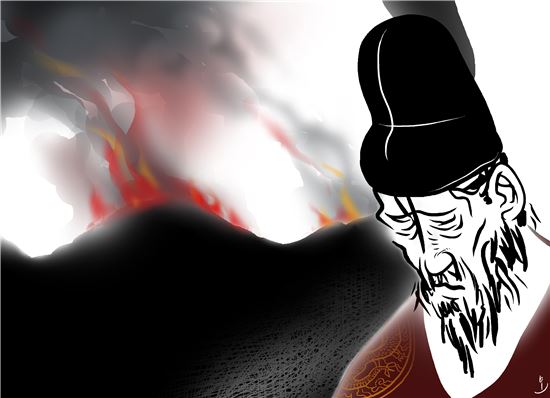 조선은 천재지변이 왕의 부덕에서 비롯된다 간주했고, 임금 또한 그것이 자기 책임에서 비롯됨을 부정하지 않았다. 화재는 천재가 아니라 인재임에도 그만큼 리더의 '책임'은 막중했던 것이다. 일러스트 = 오성수 작가