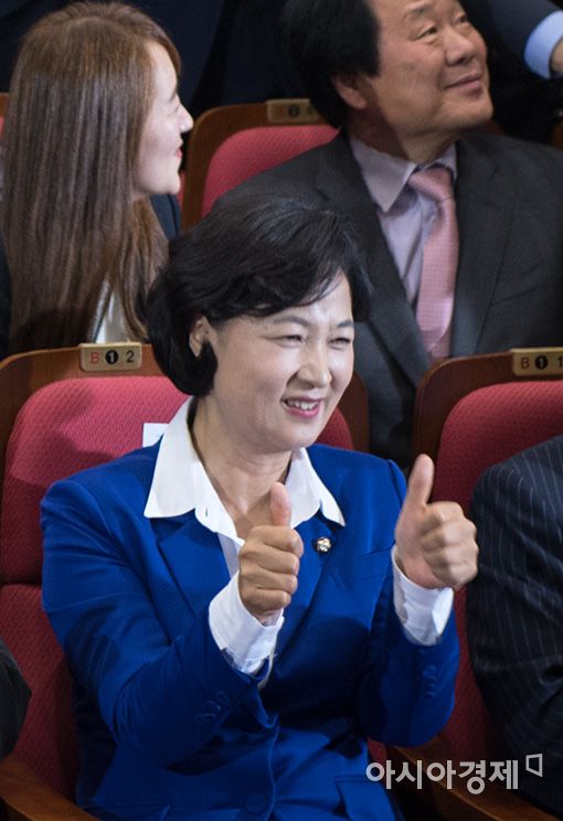 [아시아경제 윤동주 기자] 9일 출구조사 결과 문재인 후보가 홍준표 자유한국당 후보를 20%가까이 이기는것으로 발표되자 국회 의원회관에 마련된 더불어민주당 개표상황실에서 추미애 상임선대위원장이 엄지'척'을 하고 있다.윤동주 기자 doso7@asiae.co.kr<ⓒ세계를 보는 창 경제를 보는 눈, 아시아경제(www.asiae.co.kr) 무단전재 배포금지>