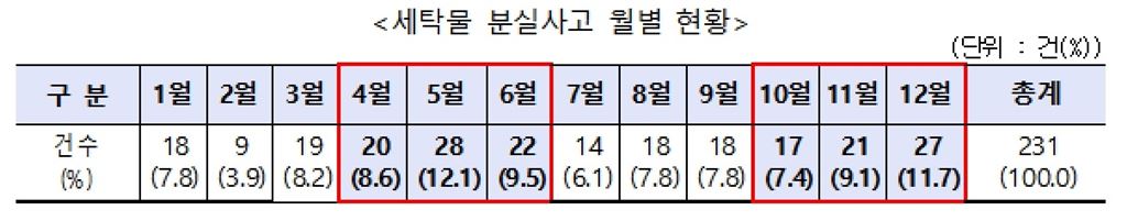 [아시아경제 오주연 기자]A씨는 지난해 3월 세탁소에 겨울용 점퍼를 세탁소에 맡겼지만, 세탁물 인수증까지 받아두는 것은 챙기지 못했다. 같은해 11월이 돼서야 세탁물을 찾으러 갔지만 의뢰한 점퍼가 없어졌다. 세탁소 사장이 찾아보겠다고 했지만 나중에는 세탁을 의뢰한 사실이 없다며 배상을 거절했다.B씨는 지난해 5월 세탁소에 의류 7점 세탁을 의뢰하고 세탁물 인수증을 교부받았다. 같은 해 10월 세탁물을 찾아와 집에서 확인해보니 남자 정장하의 1점이 없어 세탁소에 이의를 제기했지만, 업소 측에서는 세탁물 7점을 모두 찾아갔다며 배상을 거절했다.봄철이 되면 지난 겨울에 입었던 옷들을 장기간 보관하기 위해 세탁을 의뢰하는 것이 보통이다. 그러나 세탁업체에 세탁 의뢰 후 세탁물이 분실되는 피해가 매년 반복되고 있어 소비자들의 주의가 필요한 것으로 나타났다.11일 한국소비자원에 따르면 지난 3년간(2014년~2016년) 1372소비자상담센터에 접수된 세탁물 분실 관련 소비자불만 상담은 5120건, 피해구제는 231건으로 매년 꾸준히 발생하고 있다.피해구제 접수된 231건을 월별로 확인한 결과, 계절이 바뀌어 겨울옷을 세탁하는 4~6월에 70건(30.2%), 여름옷을 세탁하는 10~12월에 65건(28.2%)으로 환절기에 분실사고가 많이 발생하는 것으로 나타났다.세탁물 분실사고를 업체별로 살펴보면, 비체인 세탁업체가 198건(85.7%)으로 대부분을 차지했고 체인 세탁업체는 33건(14.3%)으로 나타났다.세탁업 표준약관에 따라 세탁업자는 세탁물을 인수 시 소비자에게 '세탁물 인수증'을 교부하도록 돼있으나 분석한 결과, 세탁물 인수증을 교부받은 경우는 76건(32.9%)에 불과했고 102건(44.2%)은 교부받지 않은 것으로 나타났다.장기간(3개월 이상) 세탁물 인수하지 않아 분실된 경우도 31.2%를 차지했다.소비자가 세탁물을 맡긴 후 분실 사실을 인지하게 된 시점은 세탁 의뢰 후 1개월 미만이 46.8%로 가장 많았으며, 그 다음으로 3개월 이상(31.2%), 1개월 이상 3개월 미만(12.5%)의 순으로 나타났다.특히 소비자가 세탁 의뢰 후 3개월간 세탁물을 찾아가지 않은 상황에서 세탁물이 분실된 경우, 세탁업 표준약관상 세탁업자의 책임이 면책되므로 소비자들의 주의가 요구된다.소비자원은 피해예방을 위해 ▲세탁물 의뢰 시 세탁물 인수증을 받아 둘 것 ▲탈부착이 가능한 부속물은 세탁물 인수증에 상세히 기록할 것 ▲세탁물 회수 시 의뢰한 세탁물 수량이 맞는지 세탁업자와 함께 확인할 것 ▲특히 분실사고 예방을 위해 세탁 의뢰 후 세탁완료 시점에 신속하게 회수해 줄 것을 당부했다.오주연 기자 moon170@asiae.co.kr<ⓒ세계를 보는 창 경제를 보는 눈, 아시아경제(www.asiae.co.kr) 무단전재 배포금지>