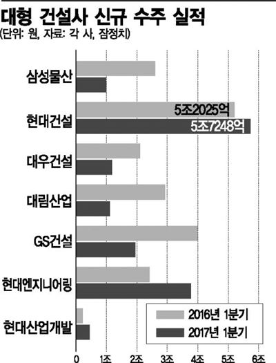 [아시아경제 박민규 기자] 올 1분기 주요 대형 건설사들 가운데 현대엔지니어링만 지난해 말보다 수주잔고가 늘어난 것으로 나타났다. 수익성 악화에 시달리던 건설사들이 그간 취했던 외형 확대 전략을 돈 되는 사업 중심의 내실경영으로 수정했기 때문이다. 11일 건설업계에 따르면 올 1분기 잠정 실적을 발표한 상장 대형 건설사 중 신규 수주와 수주잔고가 모두 늘어난 곳은 현대건설이 유일했다. 현대건설의 올 1분기 신규 수주는 5조7248억원으로 지난해 같은 기간보다 10.0% 늘었다. 수주잔고는 지난해 말 65조8828억원에서 올 1분기 말 67조4396억원으로 2.4% 증가했다. 현대건설의 수주 실적이 호조를 보인 것은 비상장 계열사인 현대엔지니어링 실적이 연결된 덕분이다. 현대엔지니어링의 연결 실적을 빼면 올 1분기 현대건설의 신규 수주는 1조9547억원으로 전년 동기보다 29.8% 줄었다. 수주잔고도 지난해 말 40조5324억원에서 올 1분기 말 39조8486억원으로 1.7% 감소했다. 현대엔지니어링은 올 1분기 신규 수주가 3조7701억원으로 전년 동기보다 55.8% 늘었다. 수주잔고는 지난해 말 25조3504억원에서 올 1분기 말 27조5910억원으로 8.8% 증가했다. 현대엔지니어링이 이처럼 양호한 수주 실적을 보인 것은 지난 3월 이란에서 3조8000억원 규모의 초대형 석유화학플랜트 건설공사를 따냈기 때문이다. 현대건설과 컨소시엄을 구성해 수주한 이 공사는 현대엔지니어링이 3조2000억원을 맡고 현대건설이 나머지 6000억원을 담당한다. 과거에는 이들과 한솥밥을 먹다가 지금은 계열분리된 현대산업개발도 올 1분기 신규 수주가 늘었다. 현대산업개발은 올 1분기 4476억원의 신규 수주를 따내 지난해 같은 기간보다 97.1% 증가한 실적을 기록했다. 이는 지난 1월 2365억원 규모 용인 양지물류센터를 수주한 영향이 컸다. 다만 수주잔고는 지난해 말 22조2671억원에서 올 1분기 말 21조8373억원으로 1.9% 줄었다. 다른 대형 건설사들은 모두 올 1분기 신규 수주가 전년 동기와 비교해 '반토막'이 났다. 건설사 시공능력평가 1위인 삼성물산은 올 1분기 신규 수주가 9810억원으로 전년 동기보다 62.4% 줄었다. 수주잔고는 지난해 말 31조7420억원에서 올 1분기 말 30조680억원으로 5.3% 감소했다. 대우건설도 올 1분기 신규 수주가 전년 동기보다 43.9% 감소한 1조1832억원을 기록했다. 1분기 말 기준 수주잔고는 33조7202억원으로 지난해 말보다 3.4% 줄었다. 대림산업 역시 올 1분기 신규 수주가 1조1131억원으로 전년 동기보다 62.0% 줄었다. 수주잔고도 지난해 말보다 8.4% 감소한 28조8109억원을 나타냈다. GS건설도 1분기 신규 수주가 1조9420억원으로 전년 동기보다 51.4% 감소했다. 삼성엔지니어링의 경우 72.9% 줄어든 6465억원의 신규 수주를 기록했다. 이처럼 대다수 건설사의 수주 실적이 감소한 것은 수익성에 초점을 맞춘 경영전략을 취하고 있기 때문이다. 건설경기 자체가 좋지 않은 상황에서 무분별한 수주에 나섰다가 낭패를 본 경험을 교훈으로 삼은 것이다. 건설업계 관계자는 "과거에는 일단 수주하고 보자는 수주 경쟁이 있었지만 이제는 손해 보는 사업은 하지 않는다는 분위기"라며 "위험을 최소화하는 전략을 쓰지 않으면 건설사들의 생존 자체가 위협받을 수 있다는 위기감이 작용한 것"이라고 말했다. 박민규 기자 yushin@asiae.co.kr<ⓒ세계를 보는 창 경제를 보는 눈, 아시아경제(www.asiae.co.kr) 무단전재 배포금지>