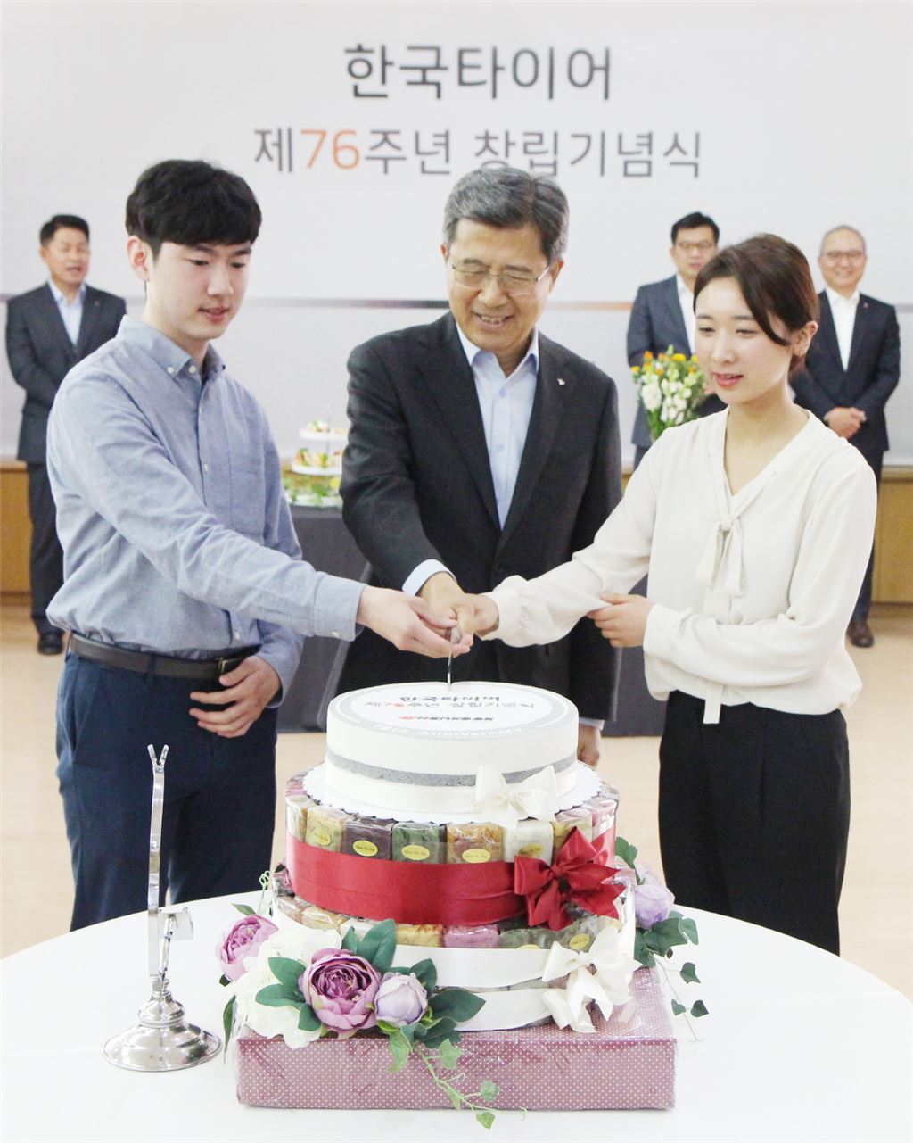 창립 76주년 기념 케익을 커팅하고 있는 서승화 한국타이어 대표이사(부회장).