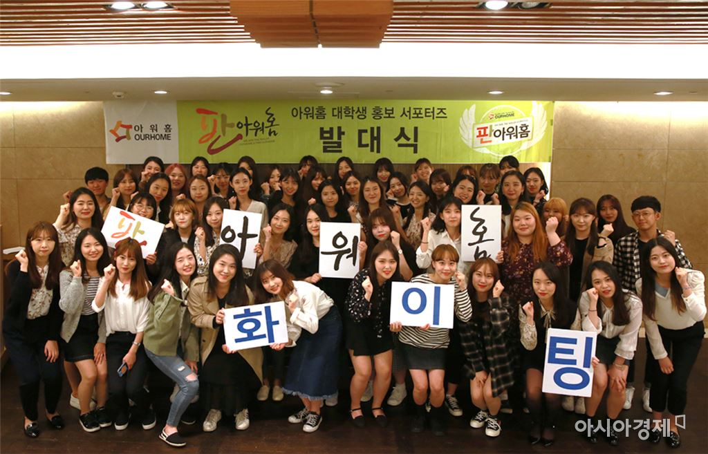지난 12일 오후 아모리스 강남점 자스민홀에서 열린 판아워홈 6기 발대식에 참석한 대학생들이 기념촬영을 하고있다.