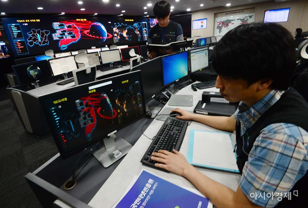 [아시아경제 백소아 기자] 유럽에서 발생한 랜섬웨어 파동이 국내에 유일될 전망을 보인 15일 서울 송파구 한국인터넷진흥원 인터넷침해대응센터에서 직원들 바쁘게 움직이고 있다. 중요 파일을 암호화한 뒤 이를 푸는 대가로 금전을 요구하는 악성 프로그램인 랜섬웨어는 현재 국내에서 5건의 감염신고가 확인됐다.백소아 기자 sharp2046@asiae.co.kr<ⓒ세계를 보는 창 경제를 보는 눈, 아시아경제(www.asiae.co.kr) 무단전재 배포금지>