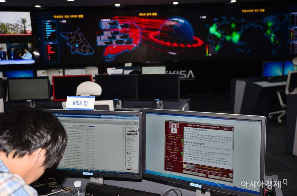 15일 서울 송파구 한국인터넷진흥원 인터넷침해대응센터에서 '워너크라이' 랜섬웨어 확산을 방지하기 위해 직원들이 바쁘게 움직이고 있다. 오전 기준 국내에서 5건의 감염신고가 확인됐다. (사진=백소아 기자)
