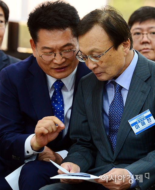 [아시아경제 윤동주 기자] 중국 특사로 내정된 이해찬 의원과 러시아 특사로 내정된 송영길 의원이 15일 서울 여의도 더불어민주당 중앙당사에서 열린 중앙위원회의에서 이야기를 나누고 있다.윤동주 기자 doso7@asiae.co.kr<ⓒ세계를 보는 창 경제를 보는 눈, 아시아경제(www.asiae.co.kr) 무단전재 배포금지>