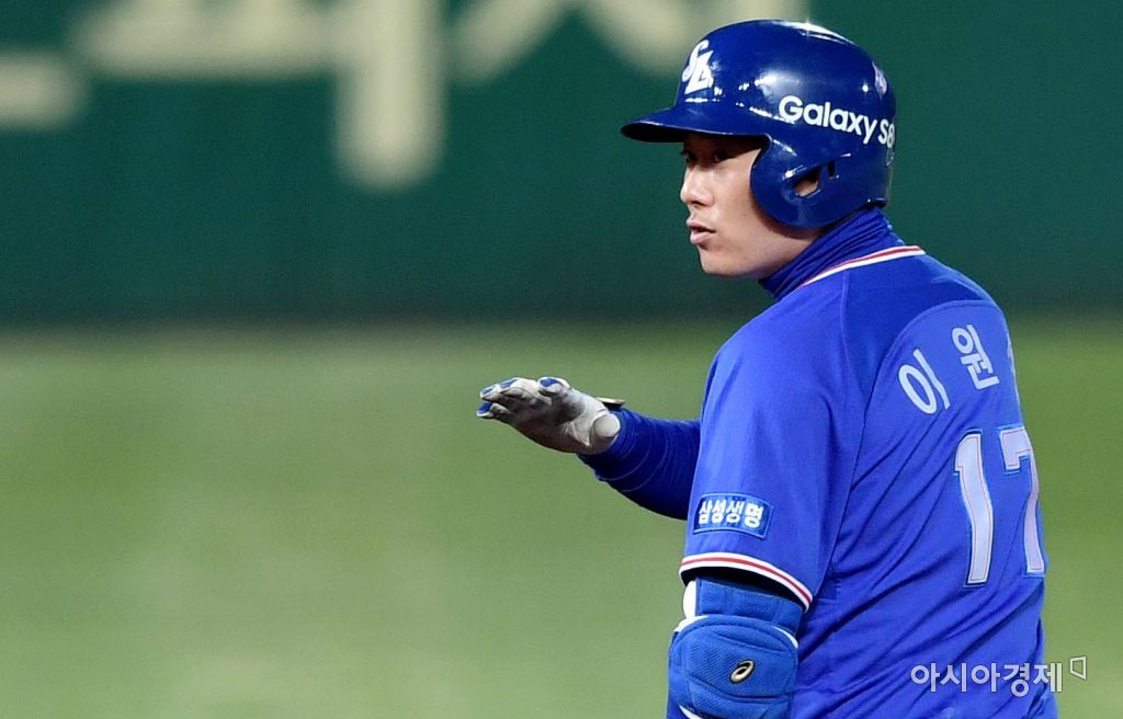 [인천=아시아경제 김현민 기자]프로야구 삼성 라이온즈와 SK와이번스의 2017 KBO리그 경기가 16일 인천 SK행복드림구장에서 열렸다. 8회초 2사 2루에서 삼성 이원석이 추가 1타점 적시타를 치고 상대 실책을 틈타 2루까지 진루하고 있다. 김현민 기자 kimhyun81@asiae.co.kr<ⓒ세계를 보는 창 경제를 보는 눈, 아시아경제(www.asiae.co.kr) 무단전재 배포금지>