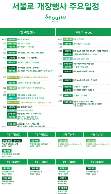 [아시아경제 김민영 기자]‘서울로 7017’ 보행길이 드디어 시민들 곁으로 온다.서울시는 오는 20일 오전 10시 서울로7017을 전면 개방한다고 17일 밝혔다.개장과 동시에 다채로운 행사가 열린다. 통기타, 전자바이올린, 해금, 인디밴드 등 다양한 장르의 버스킹 공연이 선보이고, 뽀로로, 로보카폴리 같은 우리나라를 대표하는 14개 애니메이션 캐릭터와 함께 서울로 7017을 걷는 퍼레이드도 열린다. 패션쇼도 진행된다.개장식을 30분 앞둔 오후 7시 30분부터는 서울로 7017 상부와 만리동광장에서 각각 식전행사가 열린다. 상부에서는 유러피언 재즈트리오의 공연과 함께 서울로 7017만의 독특한 야경을 책임질 1000여 개 조명 점등식이 열리고, 만리동광장에서는 문화취약계층 아동·청소년들로 구성된 ‘세종꿈나무오케스트라’의 공연이 열린다.오후 8시부턴 서울시 홍보대사 개그맨 박수홍씨의 사회로 만리동광장에서 공식개장식이 진행된다. 오디션을 통해 선발된 50여명의 ‘서울로 7017 시민합창단’의 축하공연도 열린다.21일에는 서울로 7017 개통기념 '거북이마라톤' 대회에 2000여명의 시민이 참가한다. 또 '서울드럼페스티벌'의 시민경연 프로그램인 '더 드러머'가 만리동광장에서 열린다. 온라인 예선을 통과한 30팀의 화려한 드럼연주가 광장을 가득 채울 예정이다. 오후 6시부턴 서울시국악관현악단, 서울시소년소녀합창단, 서울시무용단 공연이 열린다.김준기 시 안전총괄본부장은 “서울로 7017 개장은 ‘걷는 도시 서울’로 변모하는 첫걸음이 될 것”이라며 “3년여 간 준비를 마치고 시민들에게 첫 선을 보이는 만큼, 보행길로 새로 태어난 서울로 7017을 알차게 즐길 수 있도록 최선을 다하겠다”고 말했다. 김민영 기자 mykim@asiae.co.kr<ⓒ세계를 보는 창 경제를 보는 눈, 아시아경제(www.asiae.co.kr) 무단전재 배포금지>
