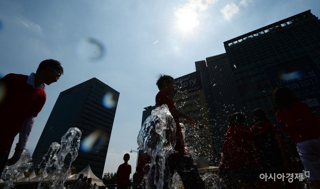 [아시아경제 문호남 수습기자] 서울 낮 최고기온이 27도까지 오르는 등 초여름 더위를 보인 17일 서울 종로구 광화문광장 바닥 분수를 찾은 초등학생들이 물놀이를 하고 있다.문호남 수습기자 munonam@asiae.co.kr<ⓒ세계를 보는 창 경제를 보는 눈, 아시아경제(www.asiae.co.kr) 무단전재 배포금지>