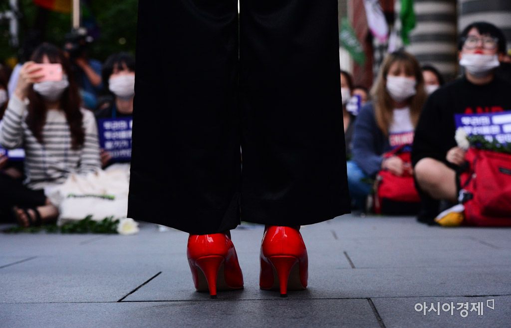 [아시아경제 문호남 수습기자] 강남역 여성 살인 사건 1주기인 17일 서울 강남구 신논현역 6번 출구 앞에서 열린 추모문화제에서 한 시민이 발언을 하고 있다.문호남 수습기자 munonam@asiae.co.kr<ⓒ세계를 보는 창 경제를 보는 눈, 아시아경제(www.asiae.co.kr) 무단전재 배포금지>
