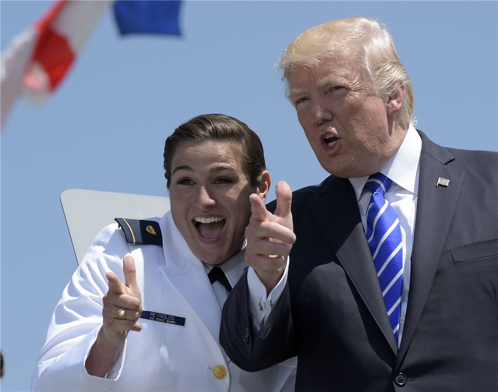 도널드 트럼프 미국 대통령이 17일(현지시간) 해안경비사관학교 졸업생과 기념 사진을 찍고 있다. (사진=AP연합)