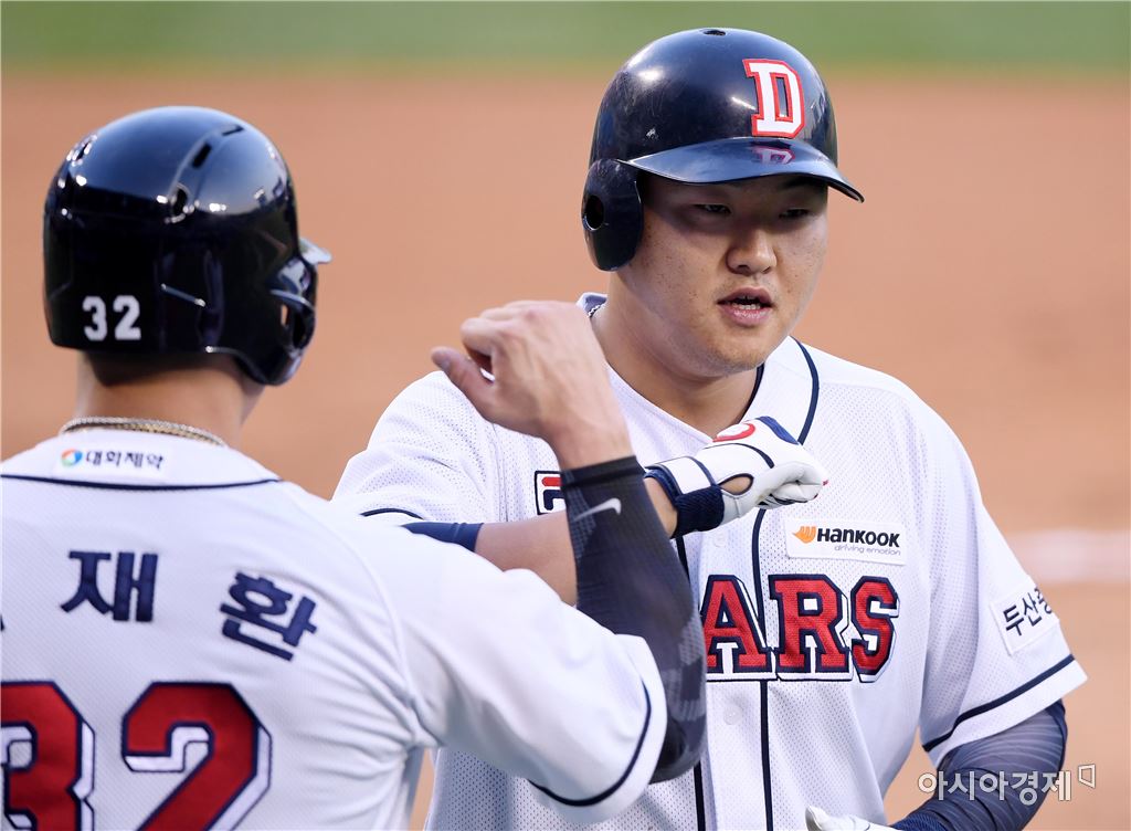 [아시아경제 김현민 기자]프로야구 NC 다이노스와 두산 베어스의 2017 KBO리그 경기가 18일 잠실구장에서 열렸다. 1회말 2사 1,2루에서 두산 오재일이 NC 선발 이민호를 상대로 추가 3점 홈런을 치고 동료들과 기뻐하고 있다. 김현민 기자 kimhyun81@asiae.co.kr<ⓒ세계를 보는 창 경제를 보는 눈, 아시아경제(www.asiae.co.kr) 무단전재 배포금지>
