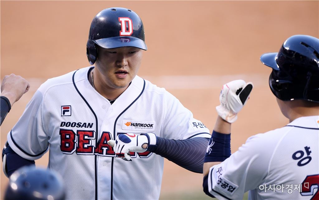 [아시아경제 김현민 기자]프로야구 NC 다이노스와 두산 베어스의 2017 KBO리그 경기가 18일 잠실구장에서 열렸다. 1회말 2사 1,2루에서 두산 오재일이 NC 선발 이민호를 상대로 추가 3점 홈런을 치고 동료들과 기뻐하고 있다. 김현민 기자 kimhyun81@asiae.co.kr<ⓒ세계를 보는 창 경제를 보는 눈, 아시아경제(www.asiae.co.kr) 무단전재 배포금지>