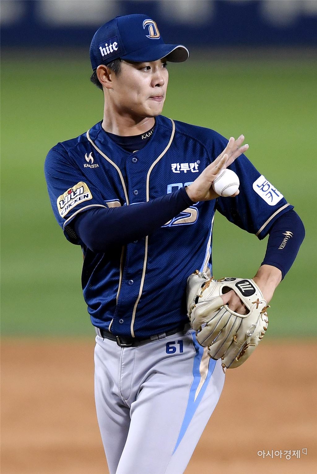[아시아경제 김현민 기자]프로야구 NC 다이노스와 두산 베어스의 2017 KBO리그 경기가 18일 잠실구장에서 열렸다. 4회말 무사 1루에서 NC 강장산이 사구를 맞힌 두산 민병헌을 향해 사과하고 있다. 김현민 기자 kimhyun81@asiae.co.kr<ⓒ세계를 보는 창 경제를 보는 눈, 아시아경제(www.asiae.co.kr) 무단전재 배포금지>