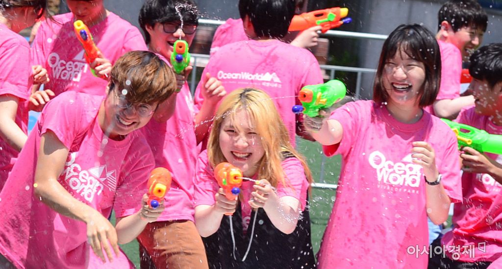 [아시아경제 문호남 수습기자] 서울 낮 최고기온이 28도로 초여름 날씨를 보인 19일 서울 마포구 서강대학교에서 오션월드 주최로 열린 워터파이트에 참가한 학생들이 물총 싸움을 하며 더위를 식히고 있다.문호남 수습기자 munonam@asiae.co.kr<ⓒ세계를 보는 창 경제를 보는 눈, 아시아경제(www.asiae.co.kr) 무단전재 배포금지>