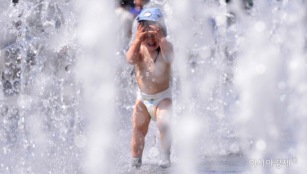 [아시아경제 문호남 수습기자] 서울 낮 최고기온이 28도로 초여름 날씨를 보인 19일 서울 종로구 광화문광장 바닥 분수에서 한 어린이가 기저귀를 착용한 채 물놀이를 즐기고 있다.문호남 수습기자 munonam@asiae.co.kr<ⓒ세계를 보는 창 경제를 보는 눈, 아시아경제(www.asiae.co.kr) 무단전재 배포금지>