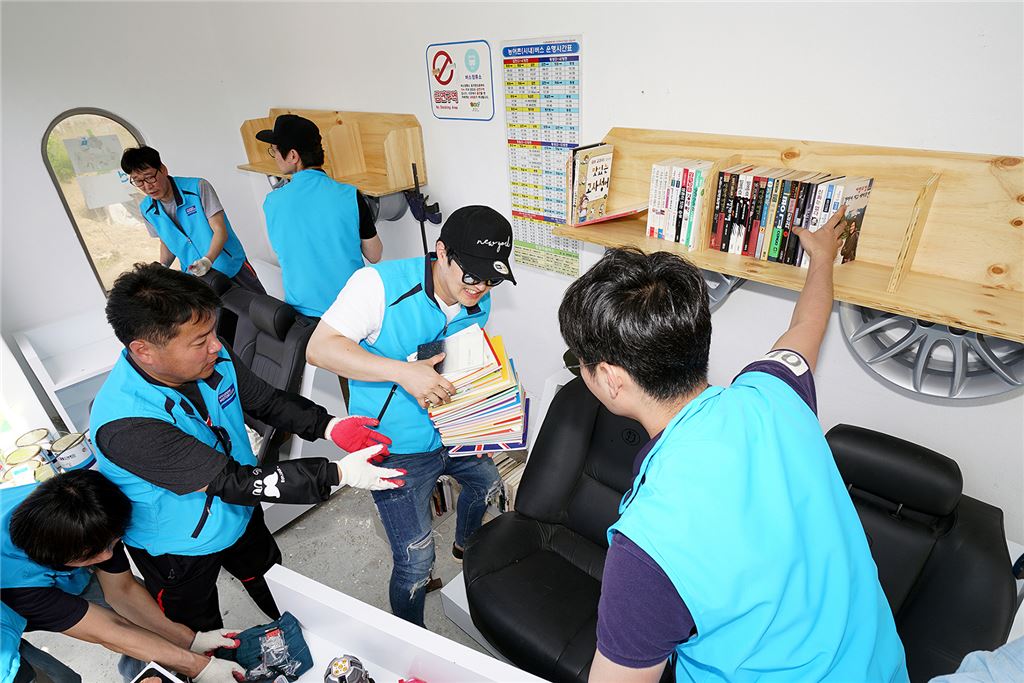 [아시아경제 기하영 기자]현대자동차 고객들로 구성된 동호회가 강원도 횡성의 교통소외 지역 주민들을 위해 버스정류장 개선작업에 나섰다. 현대차는 현대자동차 연합 동호회 '현대모터클럽' 회원 55명과 함께 지난 20일 강원도 횡성군 갑천면 추동리 추동마을 버스 정류장의 환경 개선 활동 '빌드 스테이션'을 실시했다고 21일 밝혔다. 횡성 추동마을은 하루에 버스 배차 횟수가 3~4회뿐이고 도착 시각을 정확히 할 수 없는 상황이었다. 특히 이 지역 아동들은 통학을 위해 버스정류장에 한두 시간씩 대기해야만 했다. 이에 현대차 고객봉사단은 지역 아동들을 위해, 기증받은 도서로 미니 도서관을 설치했다. 또 시트·휠 등 자동차 부품을 활용한 가구 제작, 벽화 드로잉으로 버스정류장 대기 환경을 개선했다.현대자동차 관계자는 "현대모터클럽은 업계 최초로 차종과 관계없이 현대차를 좋아해 주시는 분들이 자발적으로 만든 순수 동호회"라며 "현대차는 현대모터클럽에서 기획한 사회 공헌 활동들이 활성화될 수 있도록 지속적으로 지원할 계획"이라고 말했다. 기하영 기자 hykii@asiae.co.kr<ⓒ세계를 보는 창 경제를 보는 눈, 아시아경제(www.asiae.co.kr) 무단전재 배포금지>