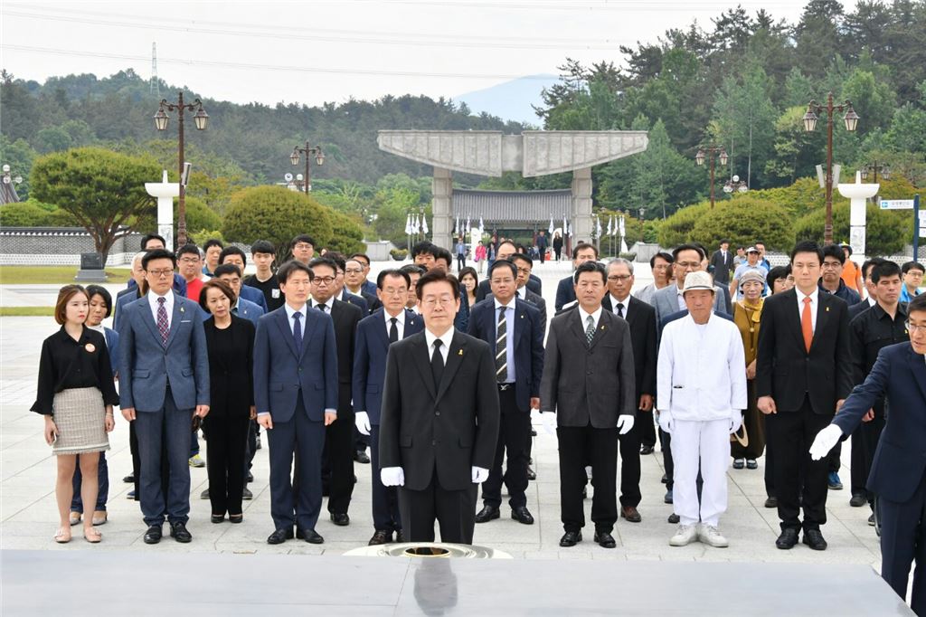 이재명 성남시장이 광주 518 민주묘역을 참배하고 있다.