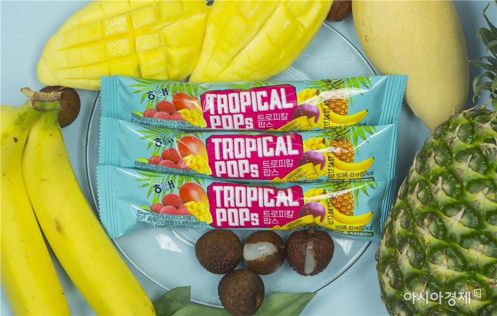 [아시아경제 이선애 기자] 열대과일을 섞어 만든 트로피칼 펀치가 아이스바로 변신한다. 해태제과의 ‘트로피칼팝스’가 그 주인공. 해태제과가 23일 출시한 트로피칼팝스는 한국인들이 가장 좋아하는 열대과일인 바나나, 망고, 파인애플에 패션후르츠, 리치를 더한 달콤상큼한 아이스바다. 과육을 담은 코코넛젤리(나타드코코)를 사이사이에 섞어 쫀득한 식감과 열대과일 특유의 상큼함을 살렸다. 레몬소다로 겉을 감싸 청량감도 높아졌다. 여기에 우유성분을 첨가해 빙과의 서걱거림이 아닌 샤베트처럼 부드러운 식감을 선사한다. 트로피칼팝스는 젊은 트렌드에 맞춰 열대과일을 섞은 혼합음료를 아이스바로 구현했다. 최근 여러가지 과일을 섞은 혼합음료는 색다른 맛을 즐길 수 있어 젊은층을 중심으로 각광 받고 있다. 특히 여름철에는 여러 열대과일을 넣은 주스, 빙수, 아이스크림 등이 인기다. 원물이 갖고 있는 찬 성질과 이국적인 달콤함이 차가운 음식과 잘 어울리기 때문이다.이선애 기자 lsa@asiae.co.kr<ⓒ세계를 보는 창 경제를 보는 눈, 아시아경제(www.asiae.co.kr) 무단전재 배포금지>