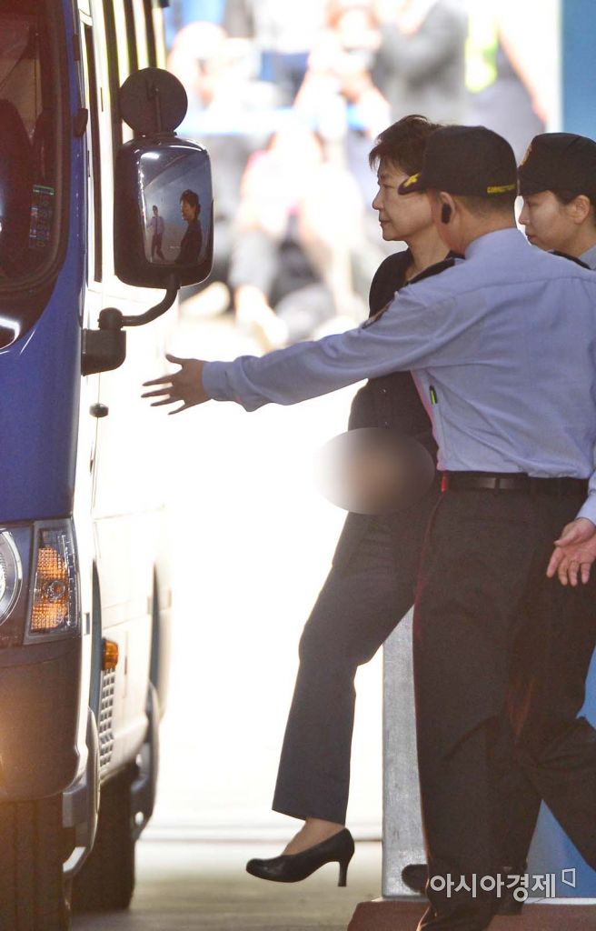 [아시아경제 백소아 기자] 박근혜 전 대통령이 23일 서울 서초구 서울중앙지법에서 첫번째 공판을 마친 후 호송버스로 이동하고 있다. 백소아 기자 sharp2046@asiae.co.kr<ⓒ세계를 보는 창 경제를 보는 눈, 아시아경제(www.asiae.co.kr) 무단전재 배포금지>